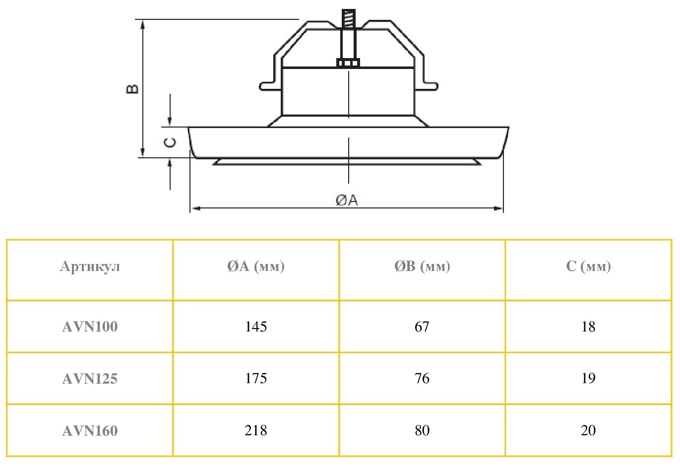 Анемостат приточный Aier AVN, круглый, диаметр 100 мм